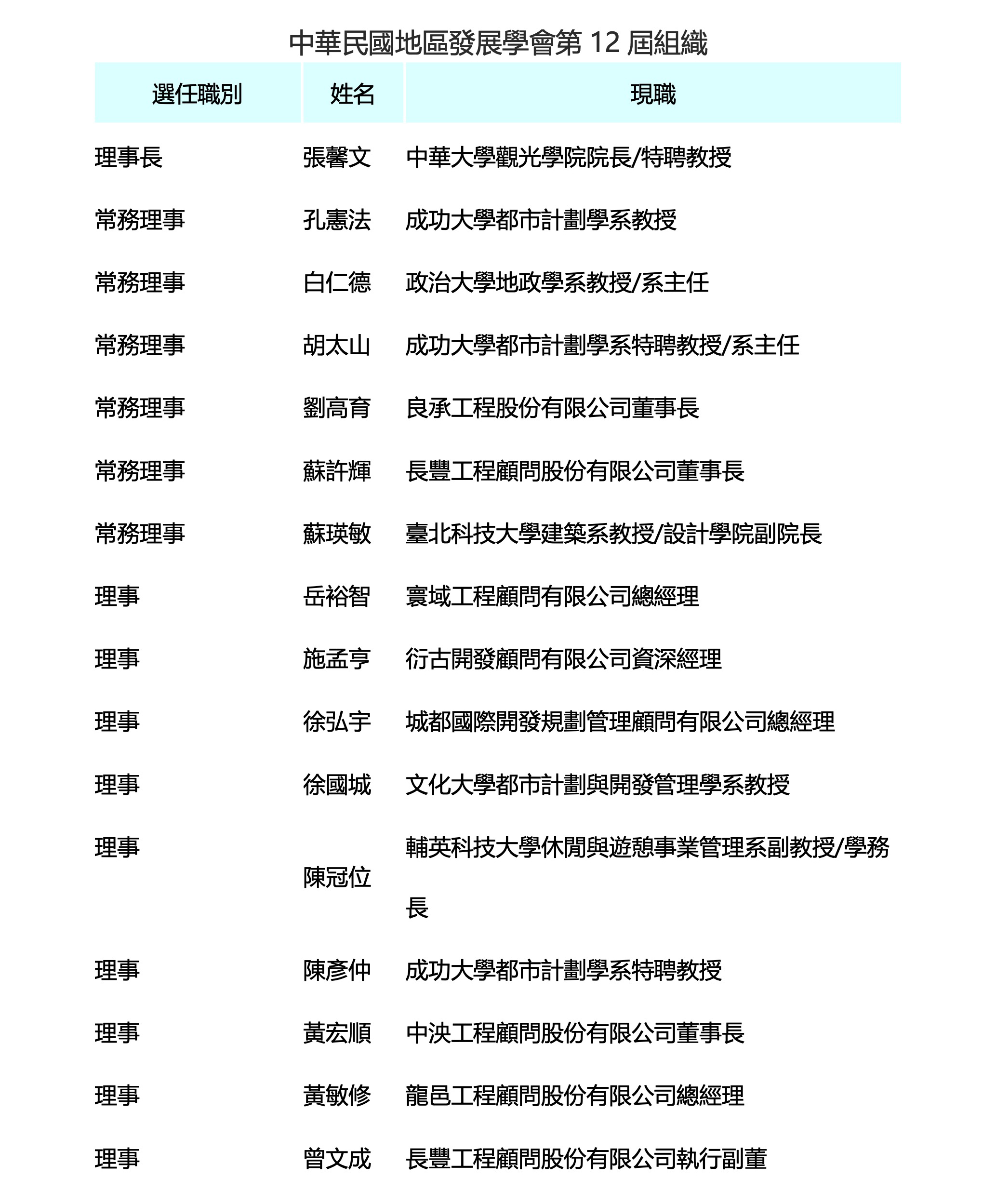 > 第12屆學會組織